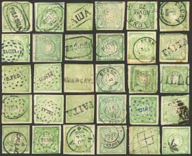321 PERÚ - EMISIONES GENERALES Lote / Usado N°Cat.: Sc.14 Buena-MB SELECCIÓN DE MATASELLOS: Sc.14, 1868/72 1d. verde, 30 sellos usados alguno sobre fragmento, al menos uno impreso sobre unión de bobinas, TODOS LOS MATASELLOS SON DISTINTOS, algunos raros e interesantes, 3 o 4 ejemplares con defectitos y el resto de lujo, muy buen conmjunto con una muy baja base! Precio inicial: US$ 100 Precio actual: US$ 100 Oferte US$ 100 o más | |