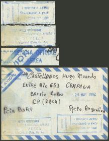 267 MALVINAS (FALKLAND I.) - HISTORIA POSTAL - GUERRA ANGLO-ARGENTINA Sobre / N°Cat.: MB. Sobre enviado el 24/MAY/1982, con franquicia militar, por un soldado apostado en Darwin a su padre en Campana, con rarísimas marcas azules de la FUERZA AÉREA, buena calidad, extremadamente raro! Precio inicial: US$ 500 Precio actual: US$ 500 Oferte US$ 500 o más | |