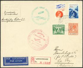 241 HOLANDA - HISTORIA POSTAL Sobre / N°Cat.: MB. Sobre certificado enviado el 21/MAR/1932 de La Haya a Bolivia vía Zeppelin en el 2º vuelo a Sudamérica de ese año, con marcas especiales y al dorso arribo a La Paz el 13/ABR, excelente calidad, raro destino! Precio inicial: US$ 350 Precio actual: US$ 350 Oferte US$ 350 o más | |
