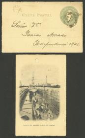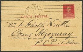 964 ARGENTINA - ENTEROS POSTALES / Usado N°Cat.: CAP-26E1 Valor de catál.: US$ 50 Aceptable-Buena Carta Postal de 4c con vista de la Boca del Riachuelo ( barcos ), enviada desde Bs As a Montevideo, fechada el 4 de Marzo de 1898, multada, marca de arribo Precio inicial: US$ 5 Precio actual: US$ 5 Oferte US$ 6 o más