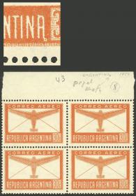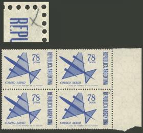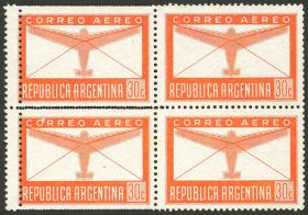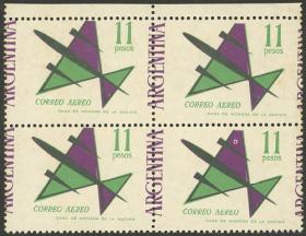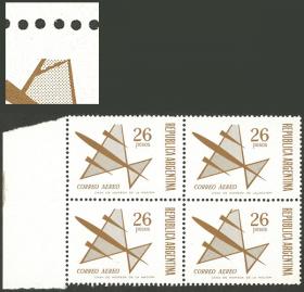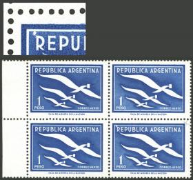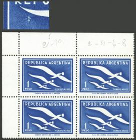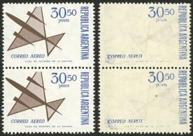 817 ARGENTINA - CORREO AÉREO Cuadro / Nuevo Mint N°Cat.: GJ.1338A MB. GJ.1338A, cuadro, los sellos izquierdos con VARIEDAD : color borravino casi invisible Precio inicial: US$ 10 Precio actual: US$ 10 Oferte US$ 10 o más