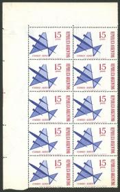 816 ARGENTINA - CORREO AÉREO Multiplo / Nuevo Mint N°Cat.: GJ.1338A Buena-MB GJ.1338A, bloque de 10 EdH con VARIEDAD: color azul desplazado a la izquierda, valor del bloque tipo US$ 20, baja base! Precio inicial: US$ 25 Precio actual: US$ 25 Oferte US$ 25 o más