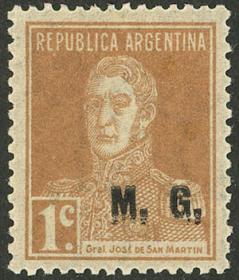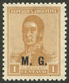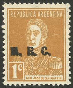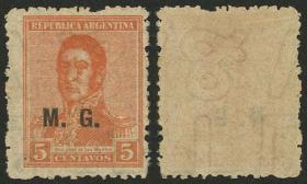 893 ARGENTINA - OFICIALES Sello suelto / Nuevo Mint N°Cat.: GJ.601 Buena-MB GJ.601, con VARIEDAD: "M.B.C." por empaste de tinta Precio inicial: US$ 5 Precio actual: US$ 5 Oferte US$ 5 o más