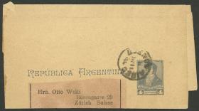 968 ARGENTINA - ENTEROS POSTALES / Usado N°Cat.: FAJ-24 Valor de catál.: US$ 10 Buena FAJ-24, Faja de 4c., enviada desde Bs As a Zurich (Suiza) el 11 de Junio 1896 Precio inicial: US$ 5 Precio actual: US$ 5 Oferte US$ 5 o más