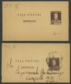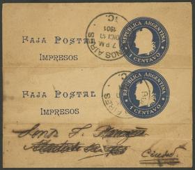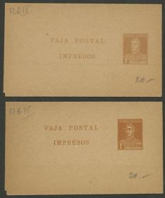 974 ARGENTINA - ENTEROS POSTALES / N°Cat.: FAJ-66A+66B Valor de catál.: US$ 15 Buena-MB FAJ-66A + 66B, Fajas de 1c., impresas en tipografía + litografía Precio inicial: US$ 8 Precio actual: US$ 8 Oferte US$ 8 o más