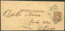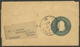 971 ARGENTINA - ENTEROS POSTALES / Usado N°Cat.: FAJ-32 Valor de catál.: US$ 12 Aceptable-Buena FAJ-32, Faja de 4c., enviada desde Bs As a Chemnitz (Alemania) el 10 de Octubre 1900 Precio inicial: US$ 6 Precio actual: US$ 6 Oferte US$ 6 o más