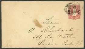 987 ARGENTINA - ENTEROS POSTALES / Usado N°Cat.: SZC-13-21-V Valor de catál.: US$ 25 Buena SZC-13-21-V, Sobre Carta de 5c. circulado en Bs As el 4 de Enero 1901 Precio inicial: US$ 15 Precio actual: US$ 15 Oferte US$ 15 o más