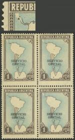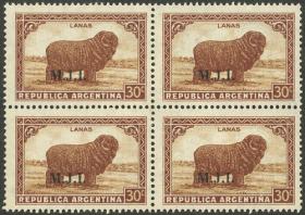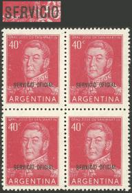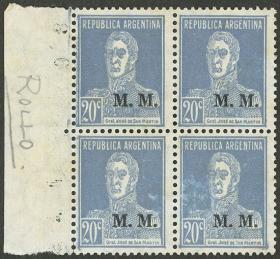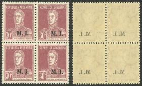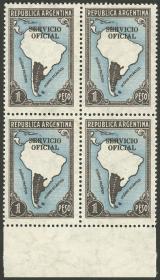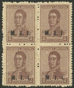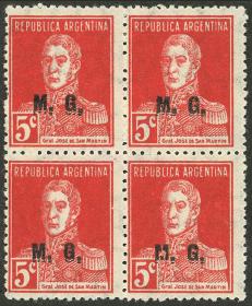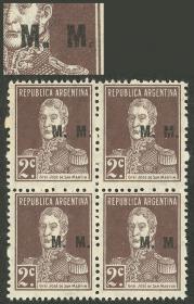 871 ARGENTINA - OFICIALES Cuadro / Nuevo o Nuevo Mint N°Cat.: GJ.185a Valor de catál.: US$ 50 MB. GJ.185a, cuadro, los 4 sellos con sobrecarga DOBLE, uno con VARIEDAD adicional : " M " rota, excelente calidad!! Precio inicial: US$ 30 Precio actual: US$ 30 Oferte US$ 30 o más