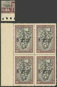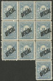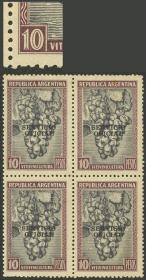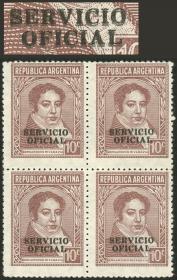 857 ARGENTINA - OFICIALES Multiplo / Sin usar (sin goma) N°Cat.: GJ.21 Buena-MB GJ.21, bloque de 10, varios ejemplares con VARIEDAD : sobrecarga desplazada Precio inicial: US$ 8 Precio actual: US$ 8 Oferte US$ 8 o más