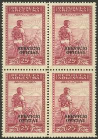 879 ARGENTINA - OFICIALES Cuadro / Nuevo o Nuevo Mint N°Cat.: GJ.384 Valor de catál.: US$ +40 Buena-MB GJ.384, cuadro, los 4 sellos con filigrana " WHEATLEY BOND ", 2 con bisagra y 2 MINT, escaso!! Precio inicial: US$ 20 Precio actual: US$ 20 Oferte US$ 20 o más