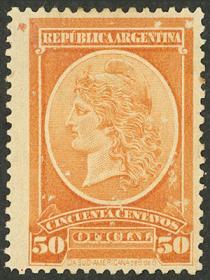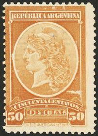 862 ARGENTINA - OFICIALES Sello suelto / Sin usar (sin goma) N°Cat.: GJ.45 Valor de catál.: US$ 35 MB. GJ.45, 50c., valor alto de la serie dentado 12¼, MB!! Precio inicial: US$ 20 Precio actual: US$ 20 Oferte US$ 20 o más