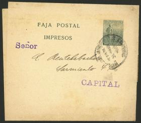 970 ARGENTINA - ENTEROS POSTALES / Usado N°Cat.: FAJ-30 Buena FAJ-30, Faja de 1c., con adicional de 1c recortado de otra faja y pegado, para totalizar un franqueo de 2c., circulada en Bs As el 10 de Diciembre 1901, es poco frecuente encontrar el presente franqueo armado de esta manera!! Precio inicial: US$ 10 Precio actual: US$ 10 Oferte US$ 10 o más