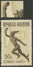 809 ARGENTINA - CORREO AÉREO Sello suelto / Nuevo con bisagra N°Cat.: GJ.864b Valor de catál.: US$ 50 MB. GJ.864b, Mercurio con nariz postiza y brazo derecho con pulsera Precio inicial: US$ 20 Precio actual: US$ 20 Oferte US$ 20 o más