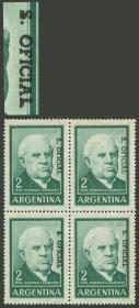 897 ARGENTINA - OFICIALES Cuadro / Nuevo Mint N°Cat.: GJ.644 MB. GJ.644, en cuadro, los sellos superiores con VARIEDADES, el izquierdo: punto después de "MAR." + el derecho: punto de color sobre la "N" de EN, MB!! Precio inicial: US$ 15 Precio actual: US$ 15 Oferte US$ 15 o más