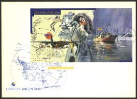 835 ARGENTINA - BLOCKS Bloque conmemorativo / Usado N°Cat.: GJ.54 Valor de catál.: US$ 13 MB. GJ.54, ( bases + fauna Antártica + pioneros ), en folleto primer día Precio inicial: US$ 7 Precio actual: US$ 7 Oferte US$ 7 o más