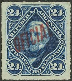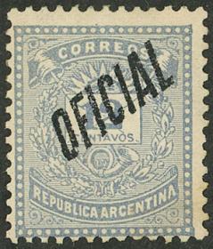 881 ARGENTINA - OFICIALES Sello suelto / Sin usar (sin goma) N°Cat.: GJ.389 MB. GJ.389, con filigrana sol múltiple, VARIEDAD NO catalogada : sobrecarga DOBLE Precio inicial: US$ 10 Precio actual: US$ 10 Oferte US$ 10 o más