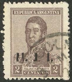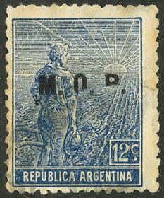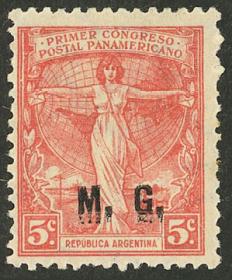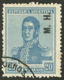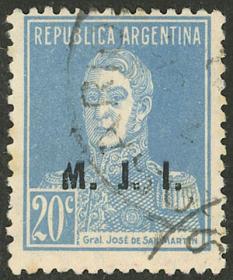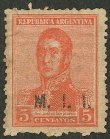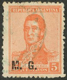 912 ARGENTINA - OFICIALES Sello suelto / Usado N°Cat.: GJ.719 MB. GJ.719, con VARIEDAD : sobrecarga desplazada Precio inicial: US$ 10 Precio actual: US$ 10 Oferte US$ 10 o más
