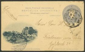 999 ARGENTINA - ENTEROS POSTALES / Usado N°Cat.: TAR-24H Valor de catál.: US$ 15 Buena-MB Tarjeta de 6c ( comunicación ) con vista de la Estación del F.C. del Sud enviada desde Bs As a Alemania el 21 de Octubre de 1906, marca de arribo Precio inicial: US$ 7 Precio actual: US$ 7 Oferte US$ 7 o más