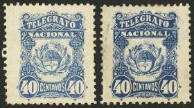 923 ARGENTINA - TELÉGRAFOS Lote / Usado o sin usar N°Cat.: GJ.3 Valor de catál.: US$ 17 MB. GJ.3, 40c. Telégrafo Nacional, en color azul ( usado ) + azul claro ( nuevo ) Precio inicial: US$ 5 Precio actual: US$ 5 Oferte US$ 5 o más