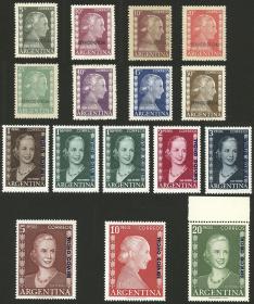 907 ARGENTINA - OFICIALES Serie / Nuevo Mint N°Cat.: GJ.685 y otros Valor de catál.: US$ 99 MB. GJ.685/687+689+691/702, Eva Perón, serie básica completa, todos de MB calidad!! Precio inicial: US$ 45 Precio actual: US$ 45 Oferte US$ 45 o más