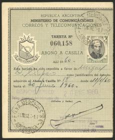 955 ARGENTINA - ENTEROS POSTALES Entero postal / Usado N°Cat.: AAC-30 Valor de catál.: US$ 25 MB. AAC-30, Abono a Casilla de $80 De Luca, usado en Mercedes en Enero de 1960 Precio inicial: US$ 12 Precio actual: US$ 12 Oferte US$ 12 o más