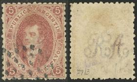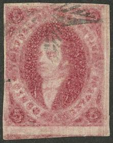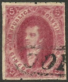 13 ARGENTINA - RIVADAVIAS Sello suelto / Usado N°Cat.: GJ.19c MB. GJ.19c, 1ª Tirada muy nítido con la FILIGRANA INVERTIDA (traspuesta), matasello puntos de Buenos Aires, ejemplar de lujo! Precio inicial: US$ 360 Precio actual: US$ 360 Oferte US$ 360 o más
