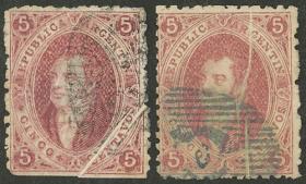 11 ARGENTINA - RIVADAVIAS Lote / Usado N°Cat.: GJ.19 Valor de catál.: US$60 MB. GJ.19, 1ª Tirada bien nítida y 2ª tirada borrosa, usados, excelente calidad! Precio inicial: US$ 35 Precio actual: US$ 35 Oferte US$ 35 o más