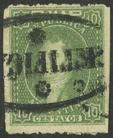 43 ARGENTINA - RIVADAVIAS Sello suelto / Usado N°Cat.: GJ.23 MB. GJ.23, 10c. Verde impresión seminítida, con matasello de "VILLA NUEVA" en óvalo chico (+200%), lujo! Precio inicial: US$ 50 Precio actual: US$ 50 Oferte US$ 50 o más