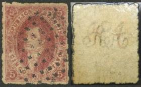 117 ARGENTINA - RIVADAVIAS Sello suelto / Usado N°Cat.: GJ.34 Valor de catál.: US$85 MB. GJ.34, 8ª Tirada con matasello mudo "10 paletas" y fechador de Buenos Aires, excelente calidad! Precio inicial: US$ 75 Precio actual: US$ 75 Oferte US$ 75 o más