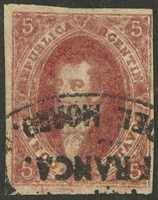 91 ARGENTINA - RIVADAVIAS Sello suelto / Usado N°Cat.: GJ.26a Valor de catál.: US$240 MB. GJ.26a, 5ª Tirada con var. DOBLE IMPRESIÓN TOTAL bien notable, usado en Córdoba, calidad lujo, raro! Precio inicial: US$ 200 Precio actual: US$ 200 Oferte US$ 200 o más