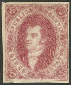 111 ARGENTINA - RIVADAVIAS Sello suelto / Nuevo con bisagra N°Cat.: GJ.34 Valor de catál.: US$437 MB. GJ.34, 8ª Tirada color rosa carmín oscuro, nuevo con goma original (+25%), muy fresco, excelente calidad! Precio inicial: US$ 330 Precio actual: US$ 330 Oferte US$ 330 o más