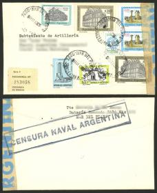 253 MALVINAS (FALKLAND I.) - HISTORIA POSTAL - GUERRA ANGLO-ARGENTINA Sobre / N°Cat.: MB. Sobre certificado enviado el 4/MAY/1982 de Mar del Plata a un oficial en el Aeropuerto de las Islas, con faja y marca de CENSURA NAVAL ARGENTINA, excelente calidad y muy raro! Precio inicial: US$ 250 Precio actual: US$ 293 Oferte US$ 323 o más | |