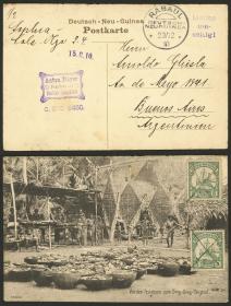 260 NUEVA GUINEA ALEMANA - HISTORIA POSTAL Sobre / N°Cat.: MB. RARO DESTINO: Tarjeta postal con vista "Vor dem Festessen zum Sing-Sing-Tanzfest" franqueada con x2 5Pf. obliterados a pluma, enviada el 23/DIC/1910 de Rabaul a Argentina, excelente calidad! Precio inicial: US$ 50 Precio actual: US$ 50 Oferte US$ 56 o más | |