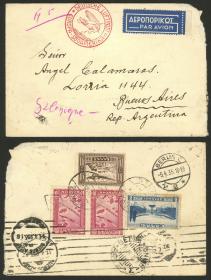 95 ARGENTINA - HISTORIA POSTAL AÉREA Sobre / N°Cat.: MB. RARO FRANQUEO MIXTO: Sobre despachado desde Buenos Aires a Santiago de Chile en el servicio regular de correo aéreo a cargo de la Cía. Aeroposta Argentina S.A., y reexpedida a U.S.A. en vuelo regular de la Cía. PANAGRA, excelente calidad y muy interesante! Precio inicial: US$ 250 Precio actual: US$ 250 Oferte US$ 275 o más | |
