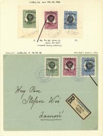 330 POLONIA - EMISIONES GENERALES Lote / Usado o sin usar N°Cat.: Yv.108/10+var. MB. Yvert 108/110, 1919 Sellos de Austria-Hungría sobrecargados, la serie de 3 valores bien desarrollada en 6 hojas de album, incluyendo sobrecargas invertidas, variedades de sobrecarga, sobres circulados y un estudio de las sobrecargas falsas, excelente calidad! IMPORTANTE: Recomiendo mirar TODAS las fotos de este conjunto, todo el material incluído está escaneado. Precio inicial: US$ 200 Precio actual: US$ 250 Oferte US$ 275 o más | |