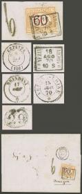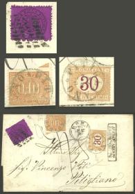 230 ITALIA - HISTORIA POSTAL Sobre / N°Cat.: MB. Cubierta enviada el 20/MAY/1870 de Roma a Pitigliano, franqueado originalmente con un sello de 20c. de Estados de la Iglesia (Sc.23b) y multado por franqueo insuficiente con 40c. (Sc.J2 + J8), al dorso tiene tránsitos por Firenze y Livorno, muy bonito, rara combinación! Precio inicial: US$ 150 Precio actual: US$ 150 Oferte US$ 150 o más | |