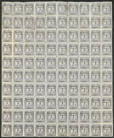 283 PERÚ - CORREO AÉREO Multiplo / Nuevo con bisagra N°Cat.: Yvert 1 Valor de catál.: Euros 8.000+ Aceptable-Buena Yvert 1 (Sc.C1), 1927 "Marinerito", HOJA COMPLETA de 100 sellos, pieza máxima y ÚNICA existente, gran rareza del correo aéreo mundial. Tiene manchitas de óxido en la goma al dorso, y algunos dentados sueltos y reforzados con bisagra (ver foto del dorso), su frente es excelente y se trata de una de las mayores rarezas del correo aéreo peruano. Baja base, oportunidad única para lograr una pieza excepcional y propia de una gran colección! Precio inicial: US$ 4000 Precio actual: US$ 4000 Oferte US$ 4000 o más | |