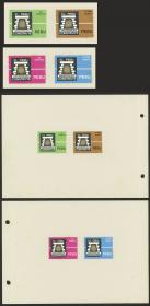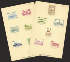 280 PERÚ - EMISIONES GENERALES Serie / N°Cat.: Sc.503+C212 MB. Sc.503 + C212 1967 Programa "Perú Construye",, PRUEBAS de la serie de 2 valores en COLORES DIFERENTES a los adoptados, adheridas a la hoja de un muestrario, además otra hoja similar con la emisión en los colores adoptados pero con diferencias de diseño (por ej. en las tipografías de los valores faciales), MB y raro conjunto! Precio inicial: US$ 200 Precio actual: US$ 200 Oferte US$ 200 o más | |