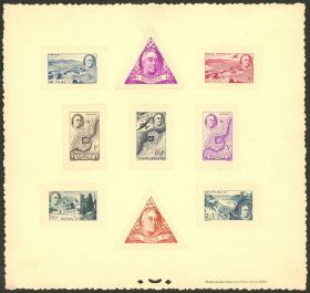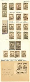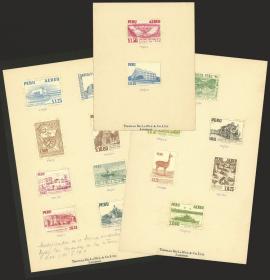278 PERÚ - EMISIONES GENERALES Lote / N°Cat.: Yv.426+otros MB. Yvert 426 + otros, 1952/3 Serie ordinaria, 12 pruebas sin dentar definitivas pegadas sobre 2 tarjetas de la impresora Thomas de la Rue, muy buena calidad, muy raro conjunto! Precio inicial: US$ 150 Precio actual: US$ 150 Oferte US$ 150 o más | |