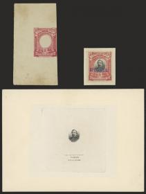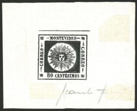 369 URUGUAY - ENTEROS POSTALES Lote / N°Cat.: MB. Pruebas de cuño de los sellos para sobres emitidos en 1866 con error ortográfico (CENTECIMOS), 5c. en los colores celeste oscuro y rojo rosa + 10c. en color verde, los 3 de excelente calidad, raro conjunto! Precio inicial: US$ 400 Precio actual: US$ 400 Oferte US$ 441 o más | |