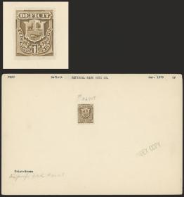 293 PERÚ - SELLOS DE MULTA Sello suelto / N°Cat.: Buena Año 1876, 40c. Escudo, ensayo no adoptado de la National Bank Note Co., prueba de cuño recortada y pegada sobre ficha de archivo del impresor, con defectito pero rarísimo y de buen aspecto! Precio inicial: US$ 90 Precio actual: US$ 90 Oferte US$ 90 o más | |