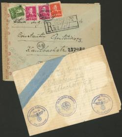 350 RUMANIA - HISTORIA POSTAL Sobre / N°Cat.: MB. 10/AGO/1944 Urziceni-Talomita a Alemania, sobre certificado con cantidad de marcas postales de de censura nazi (O.K.W.), incluímos una carta que estimo fue enviada con anterioridad, escrita en Bucuresti el 2/JUL/1944, con marcas nazis y huellas de censura. El remitente era su tío y habla de los bombardeos que sufrían en Bucuresti, la destrucción y la muerte de su hermano Theodor (padre del destinatario) unos días antes a causa de un bombardeo el día 28 de Junio "en la carretera de Buftea a pesar de haberse refugiado en automóvil para escapar de los bombardeos a la ciudad", muy interesante! Precio inicial: US$ 100 Precio actual: US$ 100 Oferte US$ 100 o más | |