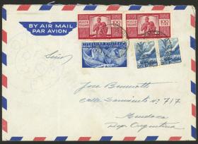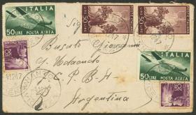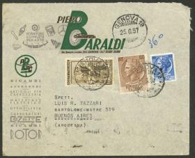 239 ITALIA - HISTORIA POSTAL Sobre / N°Cat.: MB. 25/JUN/1957 Genova a Argentina, sobre aéreo con interesante franqueo de 360L. combinando el valor alto de 200L. de la serie "Italia al trabajo" con sellos de la emisión "Moneda Siracusana 100L. + 60L.", arribo al dorso, excelente calidad! Precio inicial: US$ 100 Precio actual: US$ 100 Oferte US$ 100 o más | |