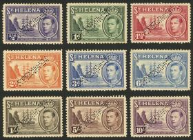 353 SANTA HELENA - EMISIONES GENERALES Serie / Nuevo con bisagra N°Cat.: Sc.118+otros Buena Sc.118/9 + 120/1 + 122 + 123 + 124 (defectuoso) + 126/7, 1938 Barcos, 9 valores de la serie (incluídos valores altos) perforados SPECIMEN, goma algo oscura sino MB calidad! Precio inicial: US$ 100 Precio actual: US$ 100 Oferte US$ 100 o más | |