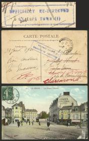 356 SUDÁFRICA - HISTORIA POSTAL Sobre / N°Cat.: MB. Tarjeta postal enviada el 3/FEB/1911 de Francia a Cape Town, el 22/FEB/1911 fué redirigida, recibiendo un fechador y la marca azul "OFFICIALLY RE-DIRECTED / AT CAPE TOWN (1)", muy buena calidad! Precio inicial: US$ 50 Precio actual: US$ 50 Oferte US$ 50 o más | |