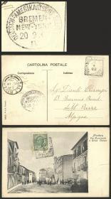 231 ITALIA - HISTORIA POSTAL Sobre / N°Cat.: MB. Tarjeta postal con linda vista: "Nicotera, via Municipale e Corso Cavour" enviada el 11/SEP/1909 a Salt River (Sudáfrica), tiene una atractiva marca oval "DEUTSCHE-AMERIKANISCHE-SEEPOST / BREMEN-NEW YORK" del 20/SEP, y arribo a destino el 19/OCT, excelente calidad! Precio inicial: US$ 50 Precio actual: US$ 50 Oferte US$ 50 o más | |