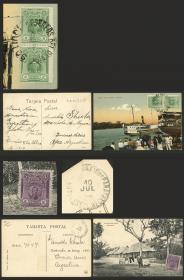 325 PERÚ - HISTORIA POSTAL Sobre / N°Cat.: MB. IQUITOS a Argentina: Par de hermosas tarjetas postales enviadas en 1910 y 1913 con franqueos de 4c. y 5c. respectivamente, la última con marca de tránsito por Pará (Brasil), excelente calidad, destino muy inusual! Precio inicial: US$ 50 Precio actual: US$ 50 Oferte US$ 50 o más | |