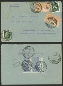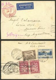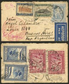 211 GRECIA - HISTORIA POSTAL Sobre / N°Cat.: MB. 9/FEB/1935 Volo - Argentina, sobre aéreo con buen franqueo de 78d. incluyendo Sc.C21 (1933 50d., valor alto de la serie), enviado vía Alemania DLH, con arribo a Buenos Aires el 22/FEB, muy buena calidad! Precio inicial: US$ 100 Precio actual: US$ 100 Oferte US$ 100 o más | |