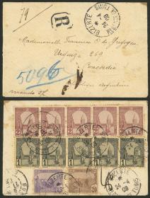 359 TÚNEZ - HISTORIA POSTAL Sobre / N°Cat.: MB. DESTINO INUSUAL: 24/ABR/1908 Bizerte a Argentina, sobre certificado con lindo franqueo al dorso (total 50c.), con dos marcas de arribo a Concordia (suaves) sobre el franqueo tunesino, excelentre calidad, raro! Precio inicial: US$ 200 Precio actual: US$ 200 Oferte US$ 200 o más | |