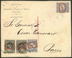 322 PERÚ - HISTORIA POSTAL Sobre / N°Cat.: MB. TARIFA DE ÚLTIMA HORA: Sobre enviado el 29/MAR/1898 de Lima a Paris con franqueo de 24c. que incluyen 2c. por un envío de última hora, tiene la marca violeta que indica el tipo de envío y arribo al dorso, MB calidad! Precio inicial: US$ 100 Precio actual: US$ 100 Oferte US$ 100 o más | |